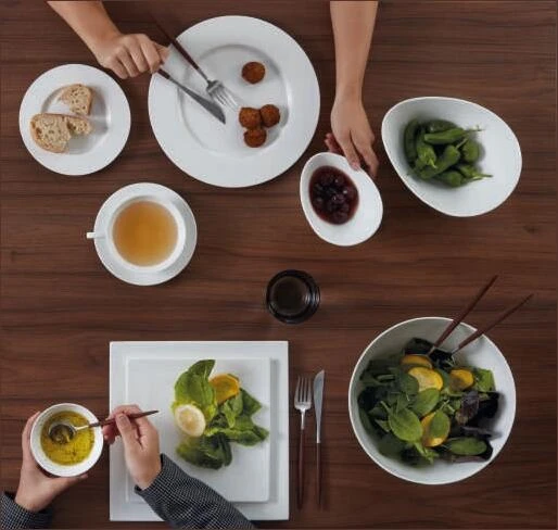 Hochwertiges Fine Bone China Porzellan und minimalistisches Design, bei dem das Essen im Vordergrund steht, sind nur zwei Argumente für die beliebte Geschirrserie á Table. Servieren Sie in der asymmetrische Schale köstliche Suppen, Salate, Pastagerichte oder nutzen Sie die Porzellanschüssel zum Anrichten von Brot, Baguette, Obst und Desserts. Das schräge Design gibt der Schüssel das gewisse Etwas. Sie erstrahlt in glänzendem Weiß, ist aus stoßfester Keramik hergestellt, spülmaschinenfest und mikrowellengeeignet.