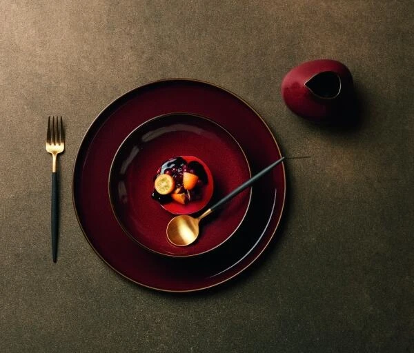 Der ASA Dessertteller der Serie Kolibri ist aus einem dunklen, herbstlichen Rot, genannt rusty red. Der Porzellan-Teller besticht durch ein zeitloses Design. Er eignet sich ideal für das Servieren von Nachspeisen und Desserts aller Art, aber auch Vorspeisen kommen auf diesem edlen Teller passend zur Geltung. Der Dessertteller wird selbst zum dekorativen Element und vollendet somit jede gedeckte Tafel.