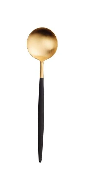 Der ASA Löffel der Serie Goa in Gold und mit schwarzem Griff ist dekorativ sowie edel. Das Besteck ist ein echter Blickfang für jede Tafel. Das Gold passt zu verschiedenen Farben, wie beispielsweise Blau, Rot und Grün und wird selbst zum Element der Tischdekoration. Das Besteck passt natürlich besonders gut zu festlichen Anlässen, kann aber auch für die extra Portion Glamour im Alltag zum Einsatz kommen.