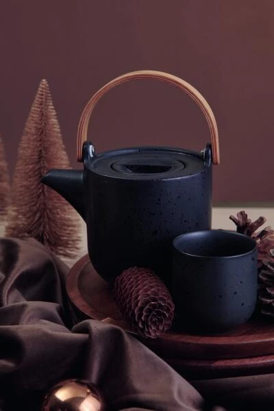 Teekanne mit Holzgriff coppa kuro. Teekanne mit Edelstahlfilter in sattem, gesprenkeltem Schwarz verleiht jeder Tafel das gewisse Etwas.