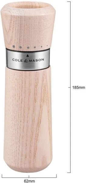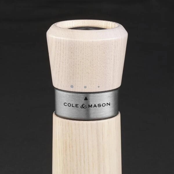 Die Lyndhurst Salzmühle von Cole & Mason ist die perfekte Mischung aus stilvoller Raffinesse und überlegener Leistung. Hergestellt aus nachhaltig gewonnenem Eschenholz, das mit einem nordischen Weissfleck versehen ist, zeigt die natürliche Schönheit der Holzmaserung. Es ist eine schöne Ergänzung für jedes Zuhause. Als Teil der Cole & Mason Gourmet Precision-Reihe bietet es Ihnen das Vertrauen, den Geschmack jeder Mahlzeit durch professionelles Würzen zu verbessern. Die Mühle verfügt über 3 voreingestellte Mahlstufen von fein bis grob, die über den Edelstahlring eingestellt werden können, die sich bewährt haben, um sicherzustellen, dass Sie immer das Beste aus Ihrer Mühle und das Beste aus Ihren Mahlzeiten herausholen. Es ist mit hochwertigem grobem Meersalz aus Belgien gefüllt, sodass Sie sie ab dem Moment, in dem Sie sie erhalten, verwenden können. Diese Umkehrmühle hält Ihre Arbeitsfläche und den Tisch sauber. Der Mechanismus befindet sich oben in der Mühle, welcher unter der Edelstahlscheibe verborgen ist. Das Gourmet Precision+ Salzmahlwerk aus diamantscharfer Keramik erzielt bei jeder Umdrehung eine immer gleichbleibende Mahlleistung.