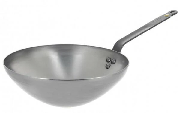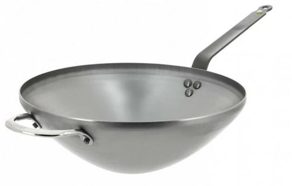 de Buyer Wok Mineral B Element. Wok aus Eisen. Perfekt für die gesund und schnelle Zubereitung von Speisen, mit wenig Fett. Der Wok ist nicht komplett rund, sodass er mit einer geringen Auflagefläche auch auf handelsüblichen Herden genutzt werden kann.