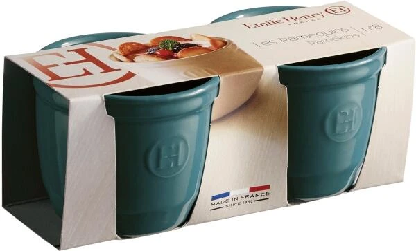 Emile Henry Töpfchen Nr. 8 in feu doux, 2er Set. Besonders hohe Töpfchen für die Zubereitung für Soufflés, Panna Cotta oder Muffins.