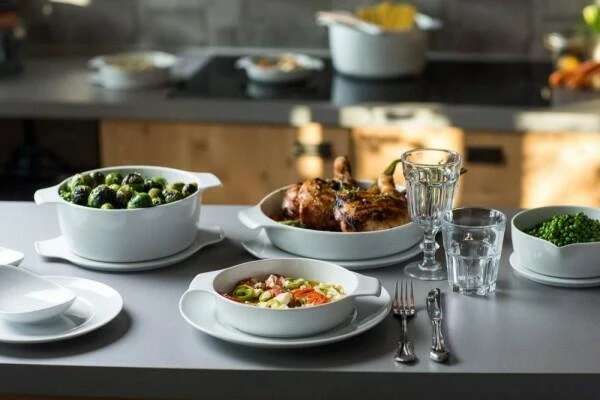 Die Serie Cook & Serve umfasst Töpfe, Schalen sowie eine Kasserolle in unterschiedlichen Größen. Alle Artikel haben einen passenden Deckel aus Porzellan, der gleichzeitig als Untersetzer oder Teller verwendet werden kann. COOK & SERVE ist besonders hygienisch, resistent, ökologisch und schont die Umwelt. Die Teile sind auf-, über-, unter- und ineinander stapelbar sowie spülmaschinenfest und sehen auch nach jahrelanger Nutzung immer noch wie neu aus. Das formschöne Kochgeschirr COOK & Serve ist optisch ein wahrer Hingucker auf jedem Tisch und hält die Speisen 3-mal länger warm als Edelstahltöpfe.