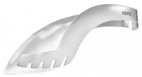 Der elegante Edelstahl-Greifer mit einer Länge von 21 cm besitzt eine ausgewogene Federkraft, die für eine optimale Kraftübertragung sorgt. Durch die Löffelform wird Salat- oder Pastasauce direkt mit serviert. Ganz besonders ist auch die Nase am Griff des Greifers. Diese verhindert das Rutschen des Greifers in Schüssel und Topf.