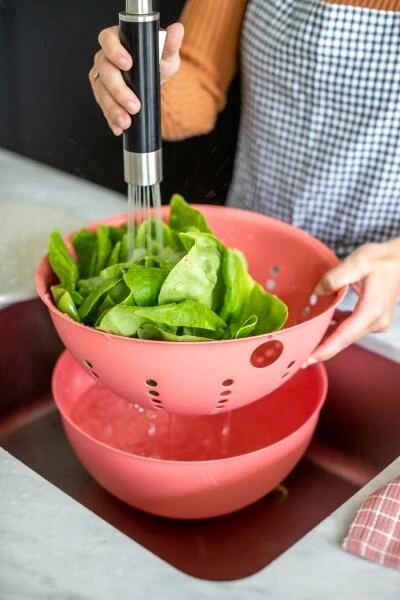 koziol Schüssel PALSBY in coral. Der Seiher aus recyceltem Kunststoff ist made in Germany. In 2 Größen verfügbar.