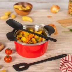 Dieses induktionstaugliche Eisenguss-Caquelon überzeugt mit sehr guter Hitzeaufnahme und Wärmespeicherung in klassischem Design. Die sechs mitgelieferten Kunststoffgabeln laden zum Teilen und gemeinsamen Genießen ein.