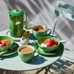 Steinzeug ist, wie Porzellan, feinkeramisch und gehört zu der qualitativ hochwertigen Kategorie dichter Tonwaren. Im Gegensatz zum namensähnlichen Steingut hat Steinzeug eine deutlich bessere Beständigkeit, Festigkeit und Dichtigkeit des Materials. Steinzeug ist auch hygienischer als Steingut und effizienter im Backofen und in der Mikrowelle. Es eignet sich selbst zur Aufbewahrung im Kühlschrank und Tiefkühltruhe. Die Le Creuset Poterie hat noch viel mehr überzeugende Produktvorteile: Sie ist geruchs- und geschmacksneutral, kratz- und schnittfest, frostsicher und hitzebeständig bis 260 Grad Celsius, säureresistent und beständig gegen Verfärbungen, einfach zu reinigen und spülmaschinenfest. Die gleichmäßige Hitzeverteilung sorgt für ein perfektes Gar- bzw. Backergebnis.