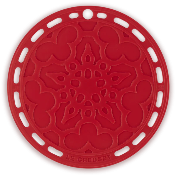 Le Creuset Silikonuntersetzer Tradition in kirschrot. Praktischer Küchenhelfer aus Silikon und verstärktem Nylon, bis zu 250 °C hitzebeständig.