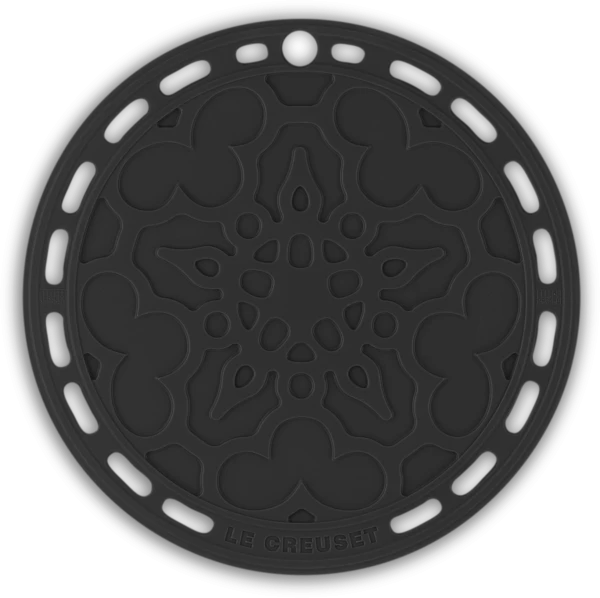 Le Creuset Silikonuntersetzer Tradition in schwarz. Praktischer Küchenhelfer aus Silikon und verstärktem Nylon, bis zu 250 °C hitzebeständig.