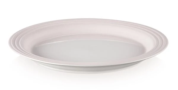 Le Creuset Speiseteller in shell pink. Der Teller eignet sich sowohl zum Servieren eines mehrgängigen Menüs als auch zum angemessenen Präsentieren des Essens am Sonntagmittag.
