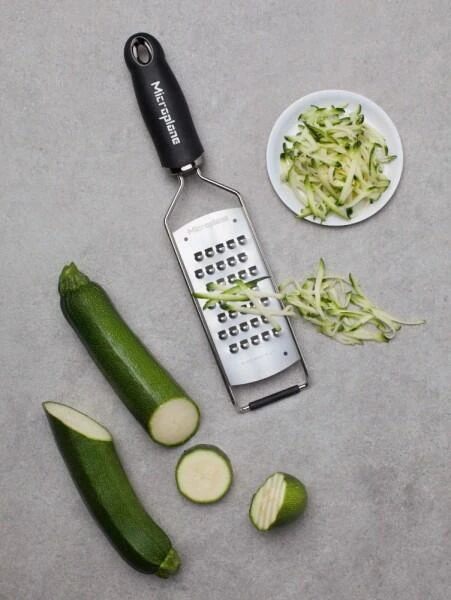 Käse kann mit der Microplane Extragrob-Reibe auf Aufläufe zum Überbacken oder zum Überkrusten von Kartoffelscheiben und Teigwaren gerieben werden.