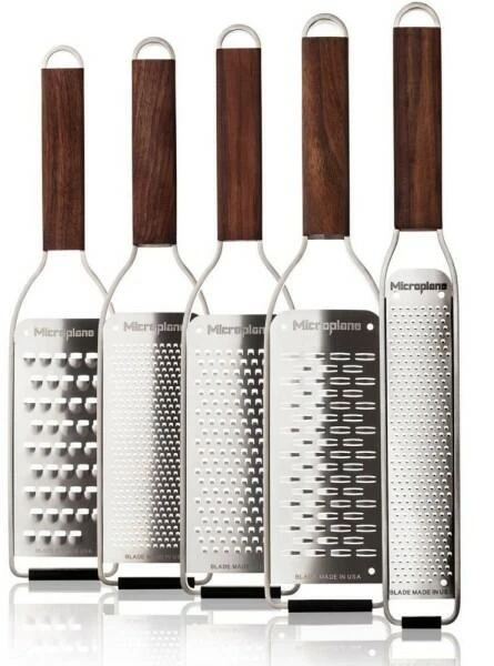 Die Master Serie von Microplane gibt es in fünf Klingenvarianten zur Auswahl: Zester, 2-Wege-Schneide, Fein, Grob und sehr Grob.