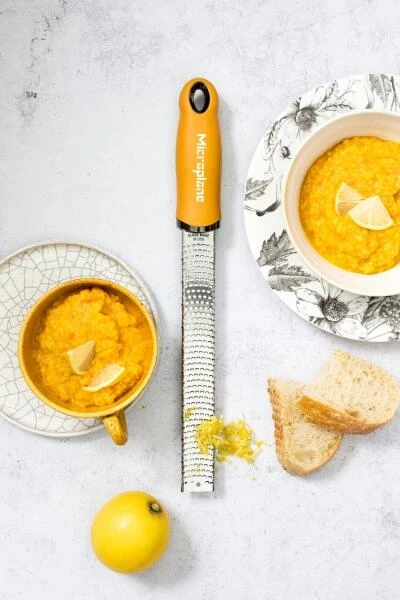 Microplane Zester-Reibe PREMIUM CLASSIC in senfgelb. Die Microplane Reibe Premium ist ideal zum Abrieb von Zitrusfrüchten, für Käse, Schokolade und Nüsse.