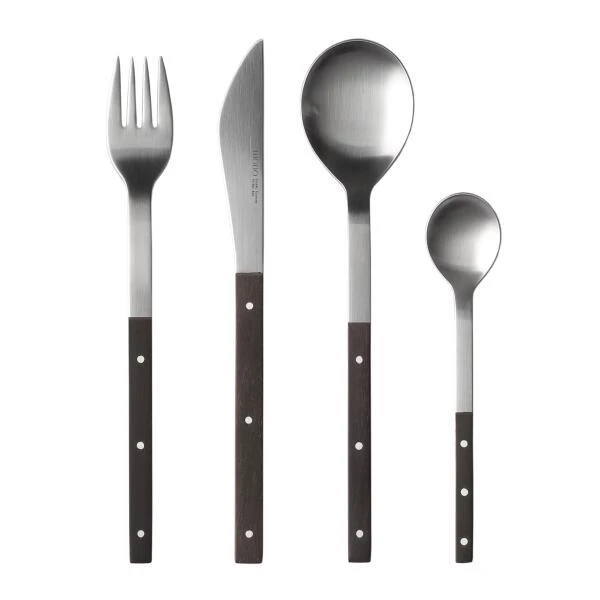 Anfang der 60er wurde die Mono A Serie durch Mono T (Teakholz) und Mono E (Ebenholz) ergänzt. Die Besteckgriffe von Mono E und Mono T werden beiseitig mit dem aufgenieteten, edlen Holz (nicht spülmaschinengeeignet!) verblendet und ergeben einen reizvollen Kontrast zum Edelstahl