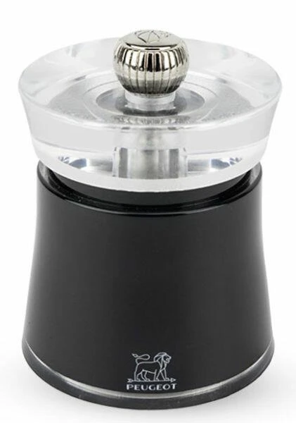 Pfeffermühle Bali in Acryl schwarz. Sie sind klein, aber sie haben die Kraft des Löwen: Die Mühlen aus der Serie Bali von Peugeot. Jetzt kommen die kleinen Starken in den Modefarben der Sommer-Saison: Schwarz und Weiß.
