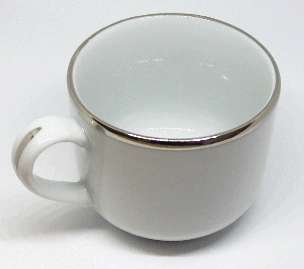Pillivuyt Teetasse Sancerre mit Platinrand. Pillivuyt Sonderanfertigung, bei der Kaffeetasse und Untertasse mit einem Platinrand verziert sind.