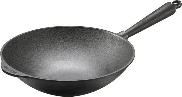 Skeppshult Wokpfanne mit schwarzem Eschenholzgriff. Die Wokpfanne aus Gusseisen ist ein echter Allrounder zum Braten, Dämpfen, Garschwenken und Frittieren. Mit ihr gelingen nicht nur asiatische Gerichte, in ihr können Sie auch jede Art von Gemüse, Fleisch und Fisch dämpfen, schmoren und dünsten. Die bekannteste Garmethode in der Wokpfanne ist das Pfannenrühren, bei dem unter ständigem Rühren die Zutaten kurz und scharf angebraten werden.