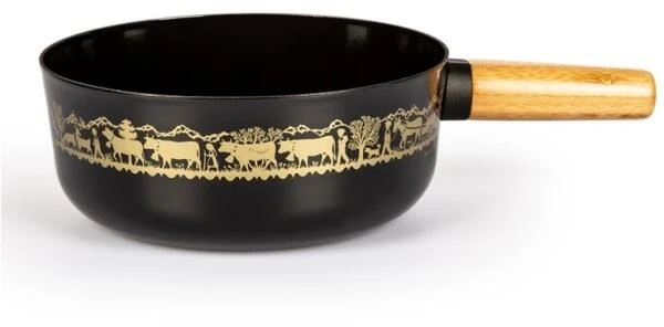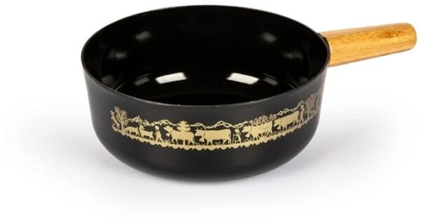 Stöckli Käsefondue-Caquelon Emotion Alpaufzug mit Holzgriff in schwarz. Induktionsgeeignet und leicht. Das traditionelle Design des Caquelons sorgt für eine gemütliche Atmosphäre beim Fonduabend. In 2 Größen erhältlich.