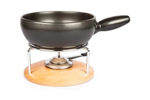 Stöckli Käsefonduegarnitur Säntis. Fonduespaß für bis zu 6 Personen. Induktionsfähiger Caquelon aus Keramik, Rechaud mit Pasten-Sicherheitsbrenner sowie 6 Fonduegabeln sind bei dem Fondue-Komplettpaket enthalten.