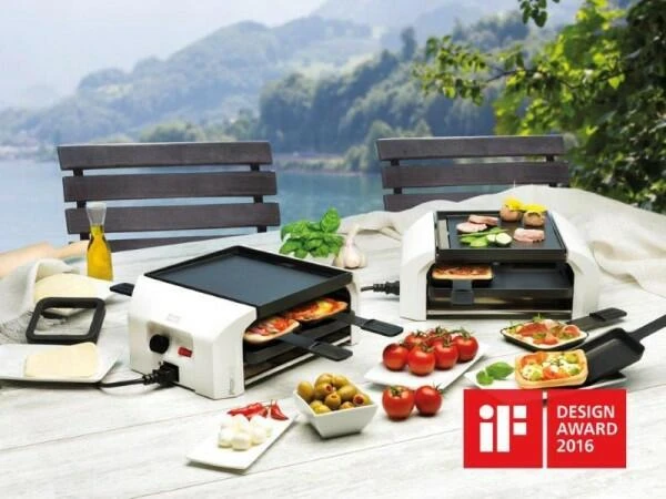 Bei größeren Runden können Sie das PizzaGrill Four4 Basisgerät mit dem Endgerät erweitern, sodass 8 Personen Platz finden. Mit dem PizzaGrill Four4 von Stöckli kommt Abwechslung auf Ihren Tisch. Ob Raclette, Grilladen oder Mini-Pizzas, Four4 ist für alles geeignet. Dank Ober- und Unterhitze und antihaft-versiegelter Grillplatte werden Sie und Ihre Gäste an diesem Gerät lange Freude haben.